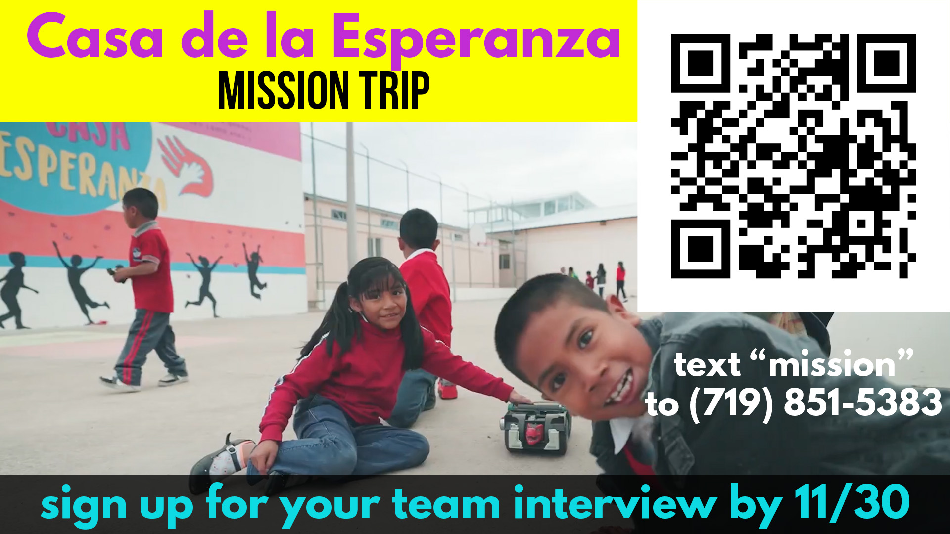 Inviting all 6th through 12th graders to a community of friends, good times and a lot of Jesus! We focus on helping students get to know the Bible for daily life.